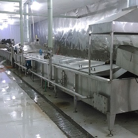 巴氏殺菌機是是將溫度控制儀設定好PU值給轉化為各溫區水槽的實際控制溫度的曲線,在通過對于溫度的檢測準確的控制各溫區的溫度的變化。主傳動電機帶動上下兩層的輸瓶鏈網將物料一次的經過三個溫區的逐級的升溫預熱,和兩個溫區的殺菌以及三個溫區的逐級的降溫和冷卻的過程。